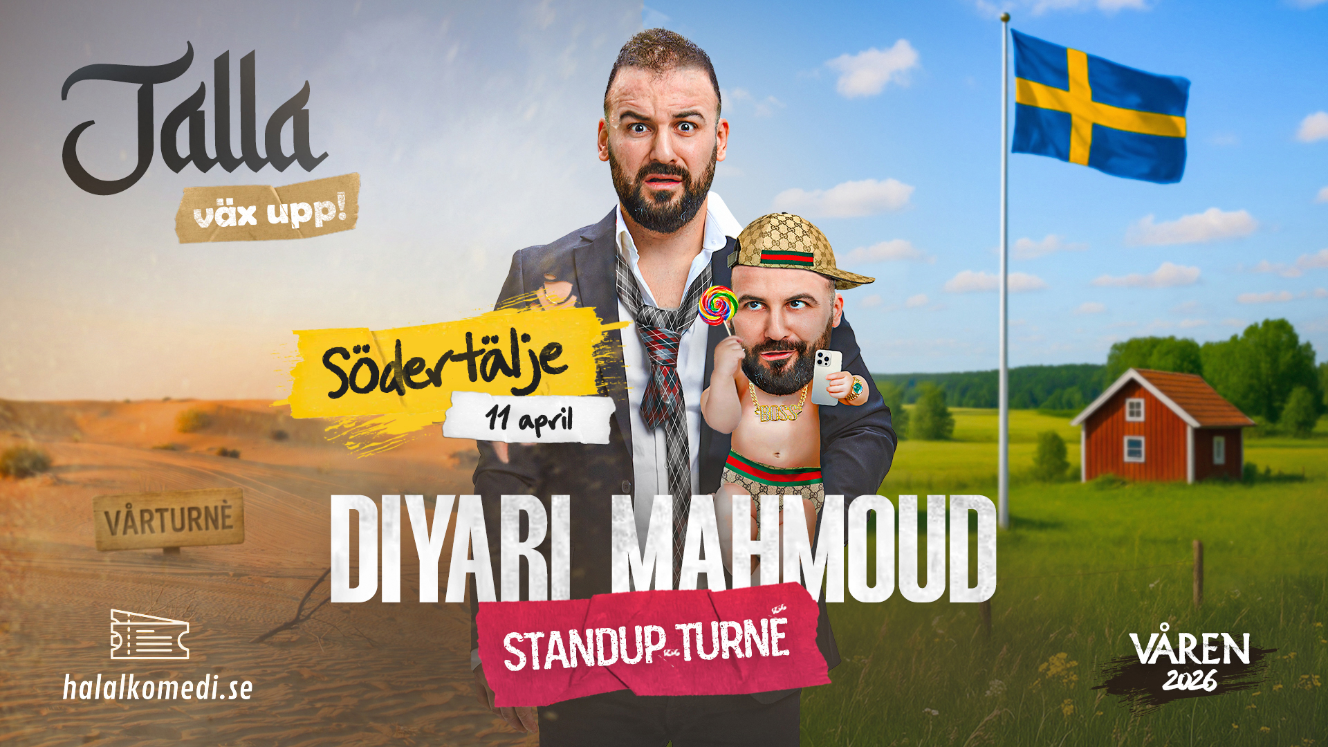 För nu är Diyari själv förälder och nu ska han guida sina barn till vuxenlivet. I ”Jalla, väx upp” får du svaret på hur väl Diyari lyckas med sitt uppdrag. Ta del av hans känslor kring de kulturkrockar som kan uppstå när man försöker växa upp och passa in i Sverige och skratta högt åt de (förbjudna) tankar inga föräldrar våga säga högt.